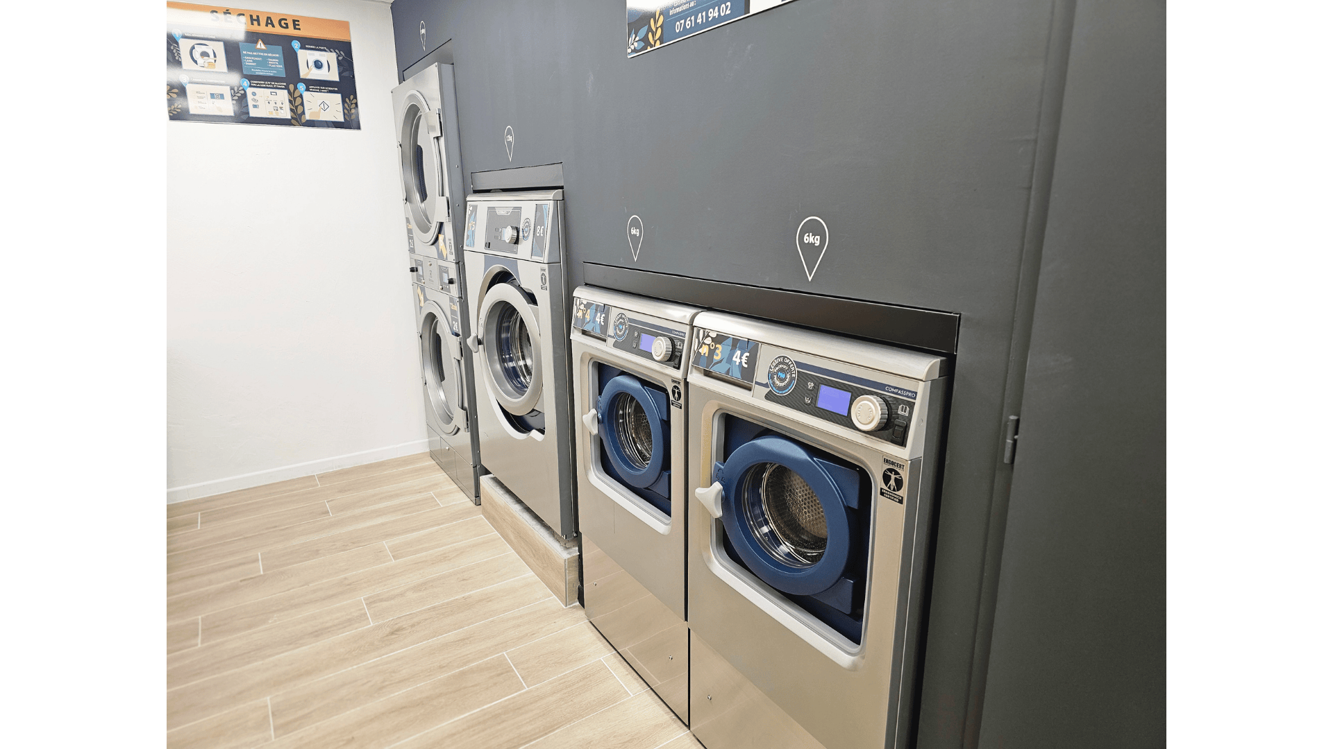 Autant pour les machines à laver que pour les séchoirs, notre matériel est simple d’utilisation et fonctionnel. Votre linge sera entre de bonnes mains !